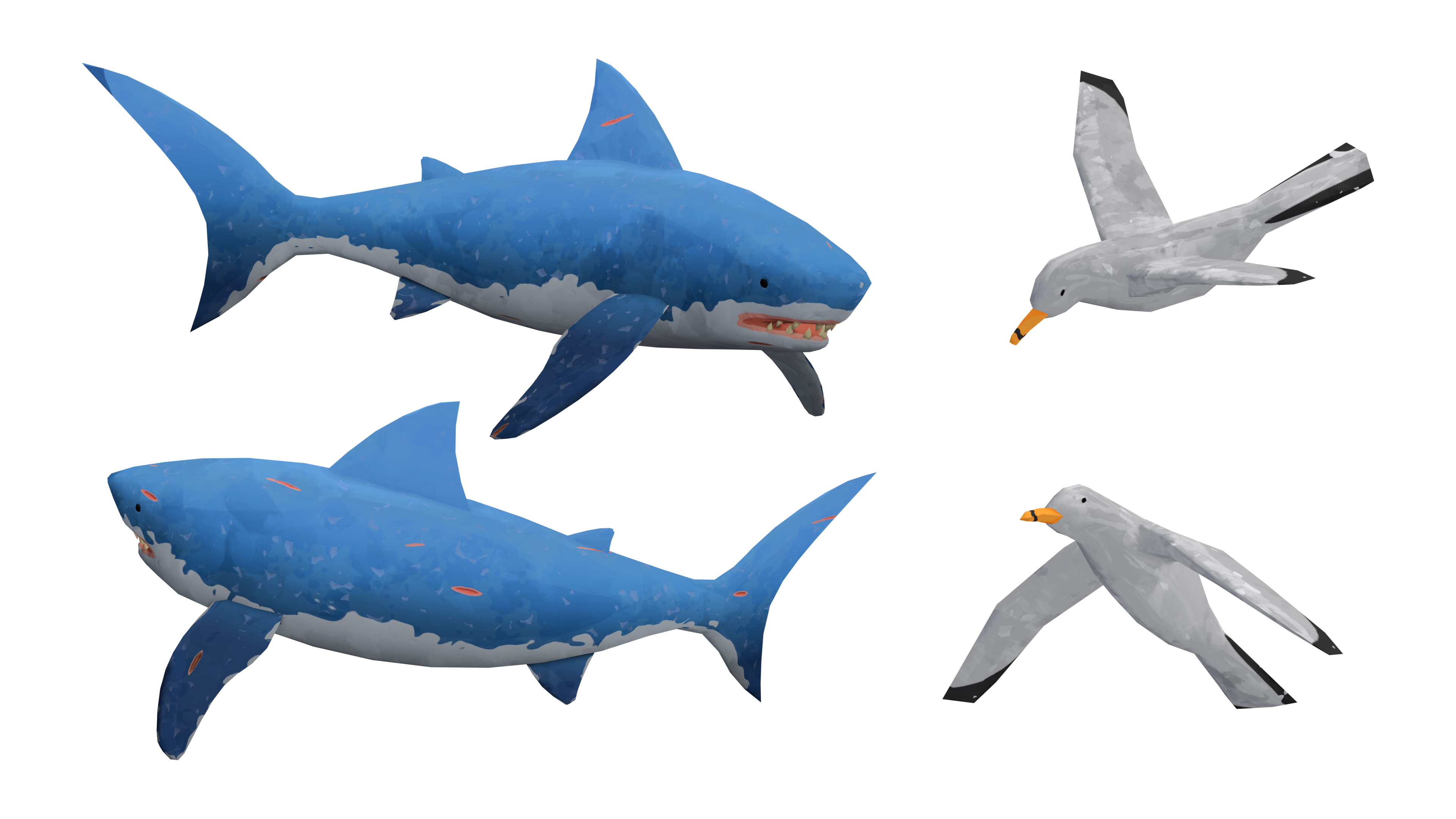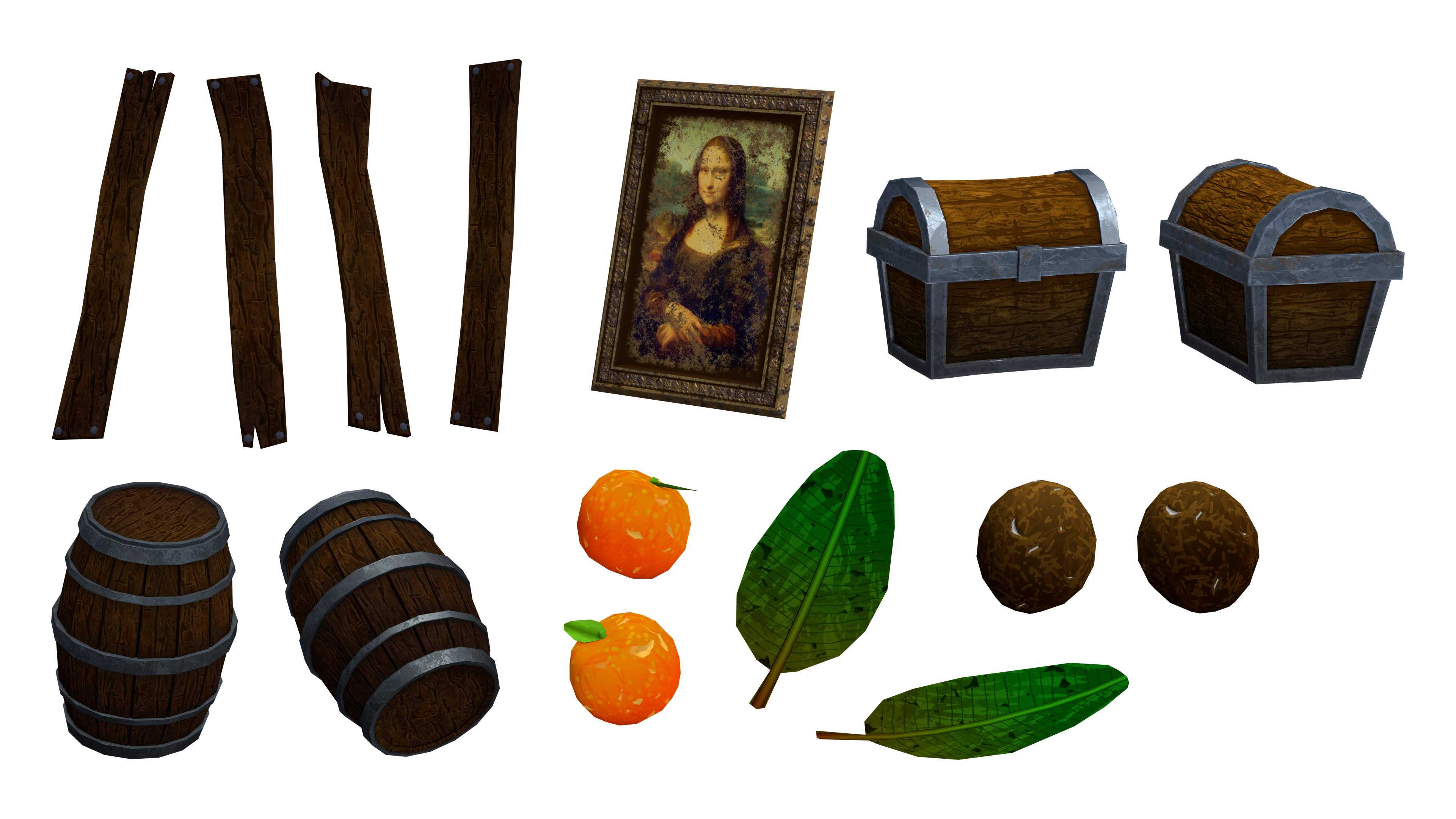 One observation I made for the textures was the "chips technique". This is something Sea of Thieves loves to do, and it works suprisingly well. The point is, that there should be no flat surfaces, everything should have these small parts chipped out of them, almost as if they were made of stone. This technique really works to sell this grungy but cartoonish style. You can really see this on the shark and orange textures.